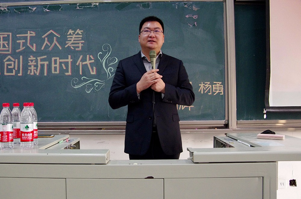 杨勇先生向同学们介绍了什么是“中国式众筹”。他从众筹杂志、网络课程等方面介绍了这种新型模式的运作和发展前景。“中国式众筹”吸收了中产阶级的资金用于投资,用专业的团队、以独特的风险识别模式控制风险。杨勇先生在讲座中,理论与案例相结合,深入浅出,让同学们对“中国式众筹”有了更深入的认识,对我国当前这一创新模式的发展有了更深入的了解。
