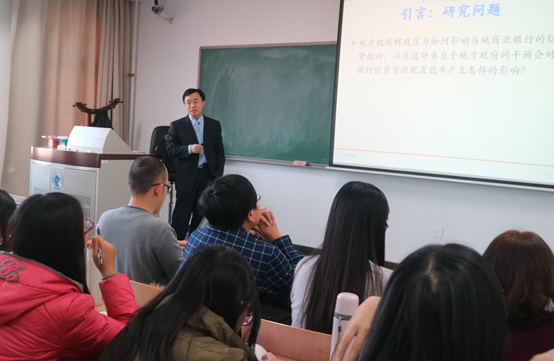 2016年12月6日上午10点,tyc33455cc邀请对外经济贸易大学国际商公司财务管理系教授、博士生导师祝继高老师在公司沙河校区西区503教室举办了题为“地方政府财政压力与银行信贷资源配置效率”的主题讲座。tyc33455cc2016级资产评估专业硕士班参加了此次讲座。此次讲座由tyc33455cc经理助理李小荣老师主持。