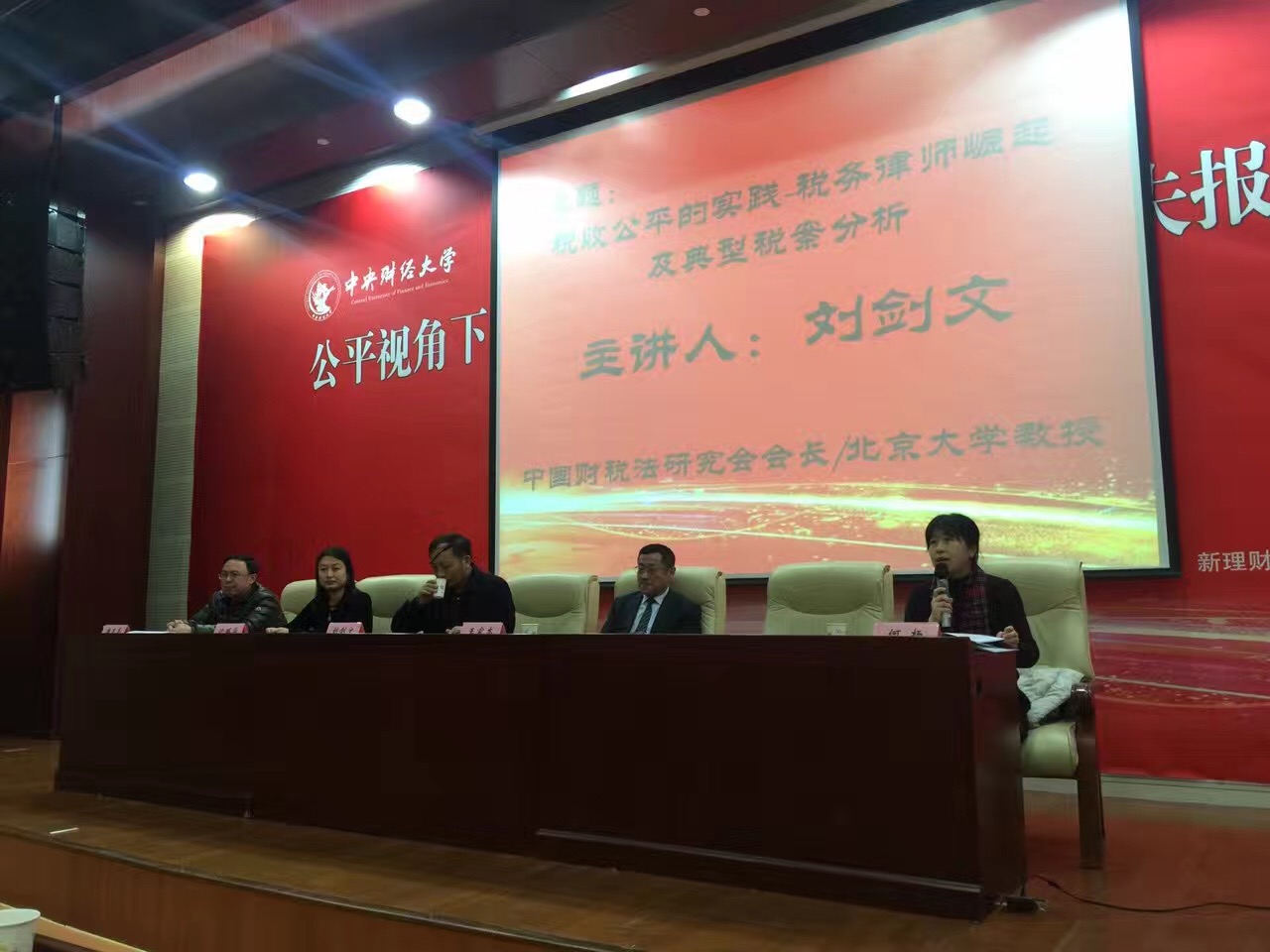 北京大学刘剑文教授就“中国的税务律师制度:定位、职能与业务范围”发表专题发言,他从税务律师的定位、国内外的发展状况等方面介绍了税务律师在中国的发展,并对我国税务律师的发展提出几点建议。国家税务总局常年法律顾问王家本律师就“纳税争议法律救济的程序问题”发表自己的观点。毕马威中国间接税税务合伙人沈瑛华女士从金融业、房地产业和跨境电商三个方面阐述增值税改革的公平性问题。北京京华瑞税务师事务所副所长周玉亮以一个房地产公司案例为示,阐述了税收风险的分析方法以及风险分析和核实。