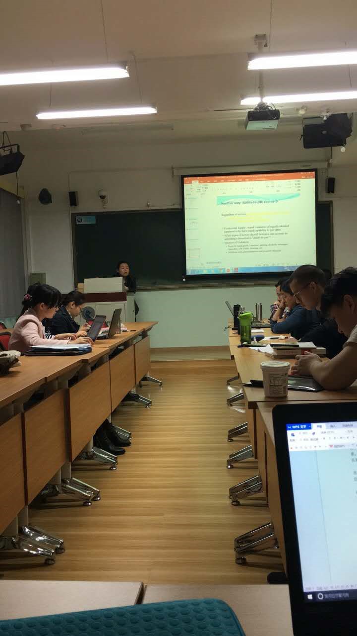 2017年4月17日-21日,王倩教授为博士生教授了一个星期的专业英语财税文献导读课程。在课上,博士生们积极主动地与王教授进行交流,主要包括博士生的研究方向以及方法、研究内容以及研究过程中所遇到问题。王教授针对每位同学的研究计划给予了相应的建议,并推荐相应的期刊如National tax Journal、Public burgeting and finance,尤其是中美预算制度上进行热烈地讨论。大多数博士生们的问题都集中在数据收集上,对此王教授建议研究从小方面入手,在现有数据的基础上进行相关的分析。从阅读文献的基础上发现问题,进行总结回顾。接下来的几次课中,王教授从税收、预算以及政府债务三个方面进行学术演讲介绍美国财政以及税收方面的相关政策制度。