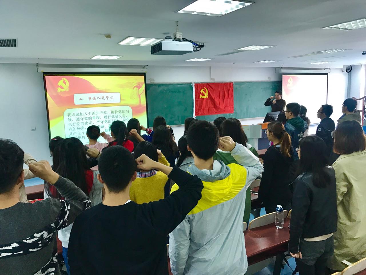 2017年10月17日上午,为迎接党的十九大胜利召开,tyc33455cc2017级硕士研究生4个党支部在沙河西区403教室联合举办了主题为“争做先锋党员,重温入党誓词”的主题党日活动,参加此次活动的有公司党委书记樊勇老师,组织员李飞霞老师,宣传委员庞淑芬老师以及2017级全体研究生党员。