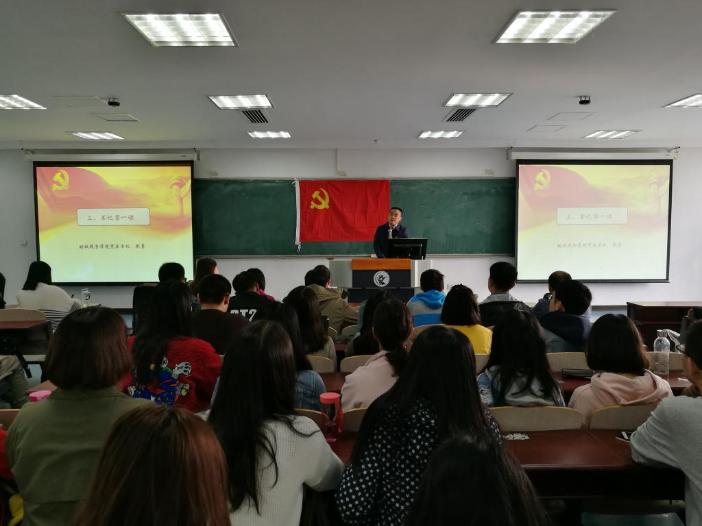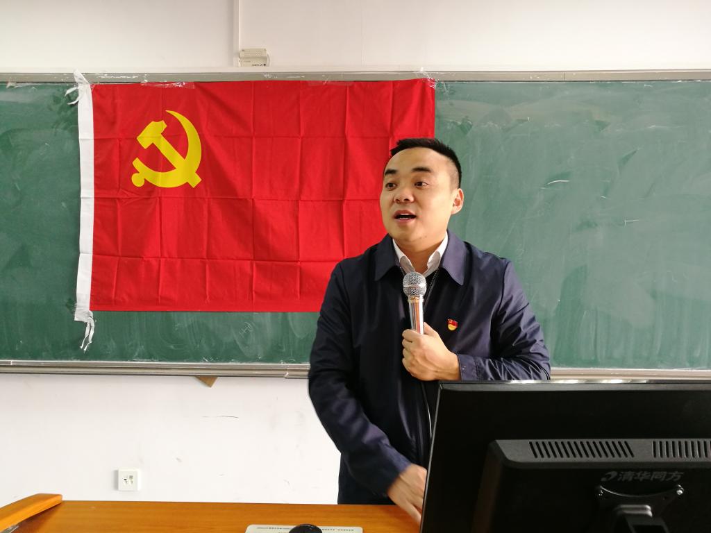 此次活动分为奏唱国歌,重温入党誓词和书记第一课三个环节。在奏唱国歌和重温入党誓词之后,樊勇书记为2017级全体研究生党员上了生动的一课。