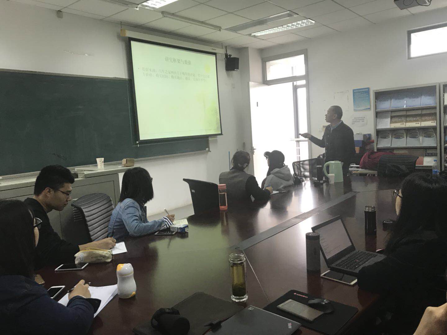 10月25日上午,在沙河7号楼312会议室,对外经贸大学周波副教授为公司师生带来关于中国车辆购置税税收归宿的学术讲座。此次财税论坛由王怡璞老师主持。公司副经理任强教授、经理助理汪昊副教授、王文静老师、访问学者谭承友老师以及部分研究生参加了研讨。
