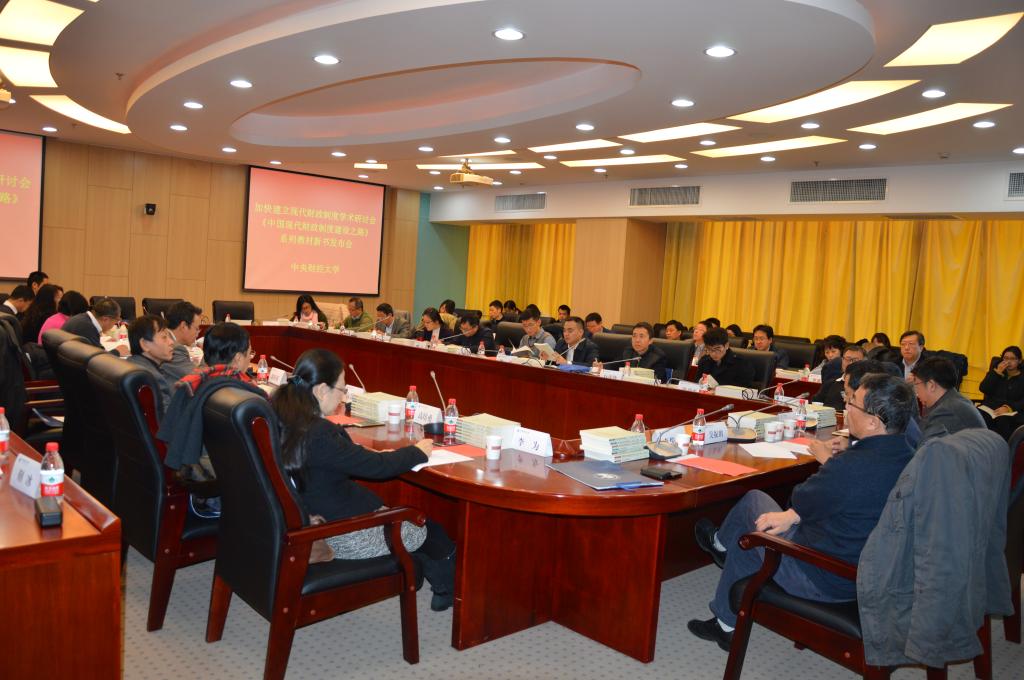 经财政部领导批准,由财政部人事教育司、干部教育中心组织,财政部综合司、条法司、税政司、预算司、监督检查局等相关司局参与,tyc33455cc、上海财经大学、中南财经政法大学、东北财经大学、江西财经大学、山东财经大学等6所部省共建高校组成研究团队,历时三年时间研究和编写完成的《中国现代财政制度建设之路》系列教材新书发布会,2017年12月10日在tyc33455cc举行。来自财政部干部教育中心、财政部人教司、各共建高校、中国社会科公司、中国财政科学研究院、中国人民大学、首都经济贸易大学、中国财经出版传媒集团的专家学者40余人参加了本次学术研讨会暨新书发布会,就中国现代财政制度建设的焦点话题展开热烈研讨。