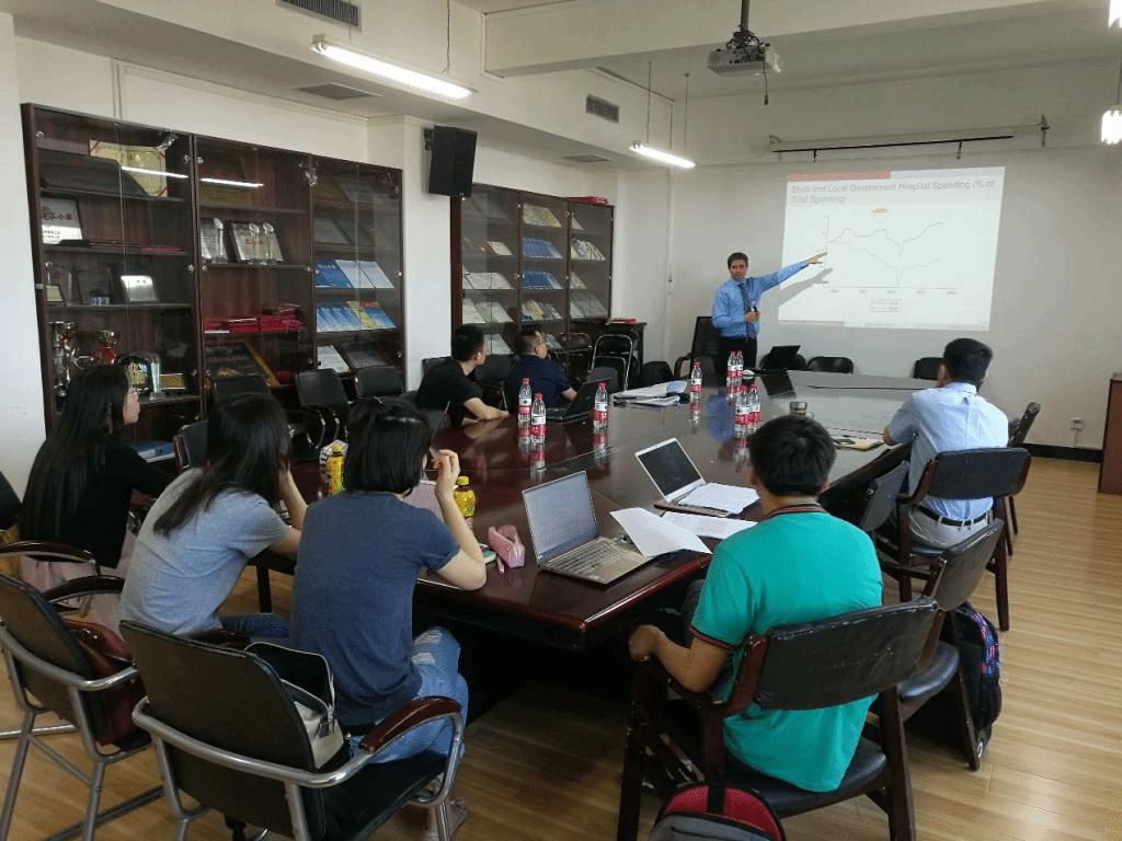 5月30日下午美国印第安纳大学公共和环境事务公司Justin MichaelRoss教授在主教1108会议室作题为“地方政府能否代表选民偏好?——基于地方政府平价医疗法案的研究”讲座。Justin MichaelRoss教授担任印第安纳大学地方政府治理协会主席,其研究领域为地方政府治理、社保改革等公共财政领域。讲座由tyc33455cc樊勇教授主持,tyc33455cc部分教授和博士、硕士生参加了此次讲座。