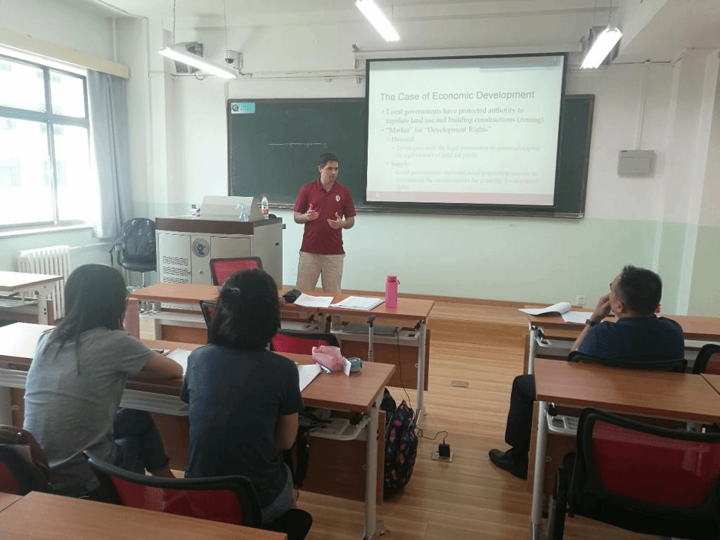 5月31日上午美国印第安纳大学公共和环境事务公司Justin MichaelRoss教授在主教211与财税公司税收学专业博士生作了题为“当地政府会将一些妨害事务设置在行政边界上吗?——基于美国风力发电机的实证分析”的讨论。Justin MichaelRoss教授担任印第安纳大学地方政府治理协会主席,其研究领域为地方政府治理、社保改革等公共财政领域。