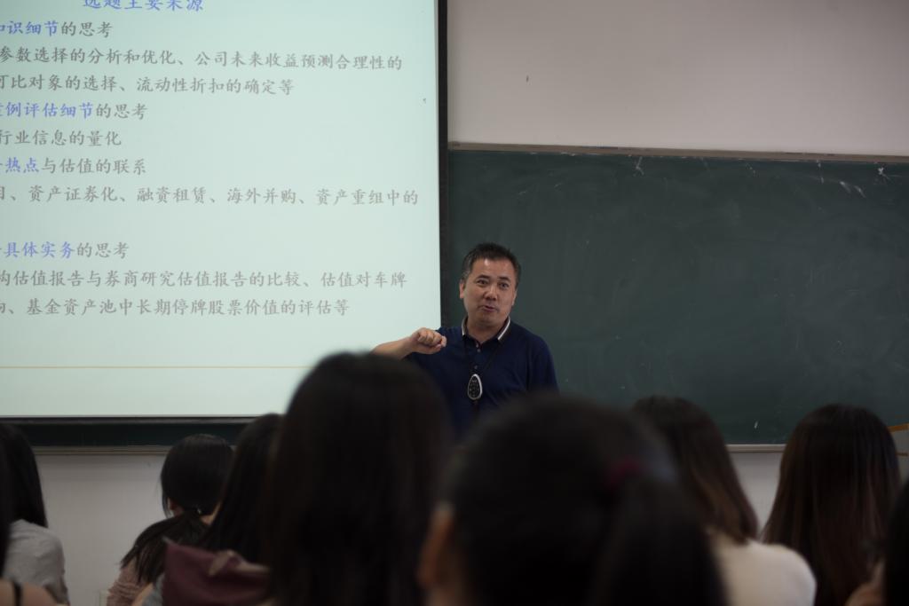 首先,翟老师从选题的角度,讲解了毕业论文选题的背景与来源。翟老师向同学们介绍了论文的选题的四个主要来源,分别是对专业知识细节的思考、对某一实务案例评估细节的思考、对资本市场某一热点与估值的思考以今年对资本市场某一具体实务的思考。并希望同学们的研究问题能够具有聚焦性、可挖掘性与一定程度的创新性。