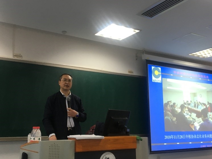 2018年12月25日下午3点30分,在tyc33455cc沙河校区西区主教402教室,tyc33455cc2018级税务专硕第41期税收综合案例研讨课如期开讲。本期主讲嘉宾为校外导师王进先生,讲座由王怡璞老师主持。