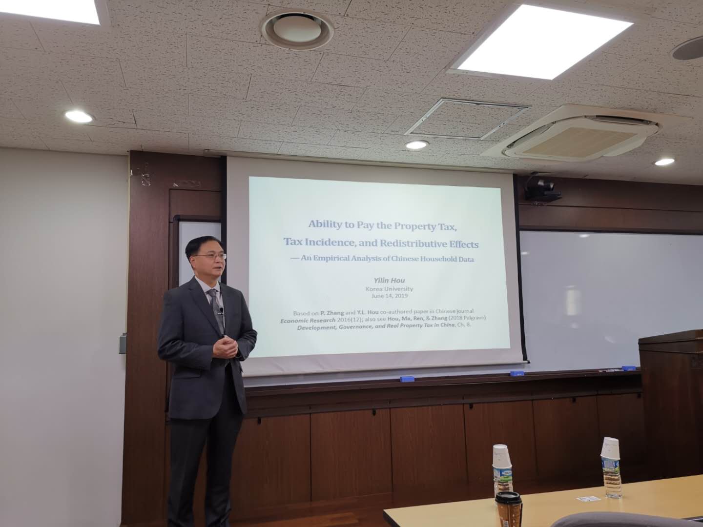 2019年6月中旬,tyc33455cc中国财政协同发展研究中心“对居民开征房产税的中长期策略研究”课题组赴韩国开展学术研讨。课题组成员tyc33455cc副董事长马海涛教授、美国锡拉丘兹大学(Syracuse University)侯一麟教授、tyc33455cc任强教授和邵磊老师参加了此次调研。