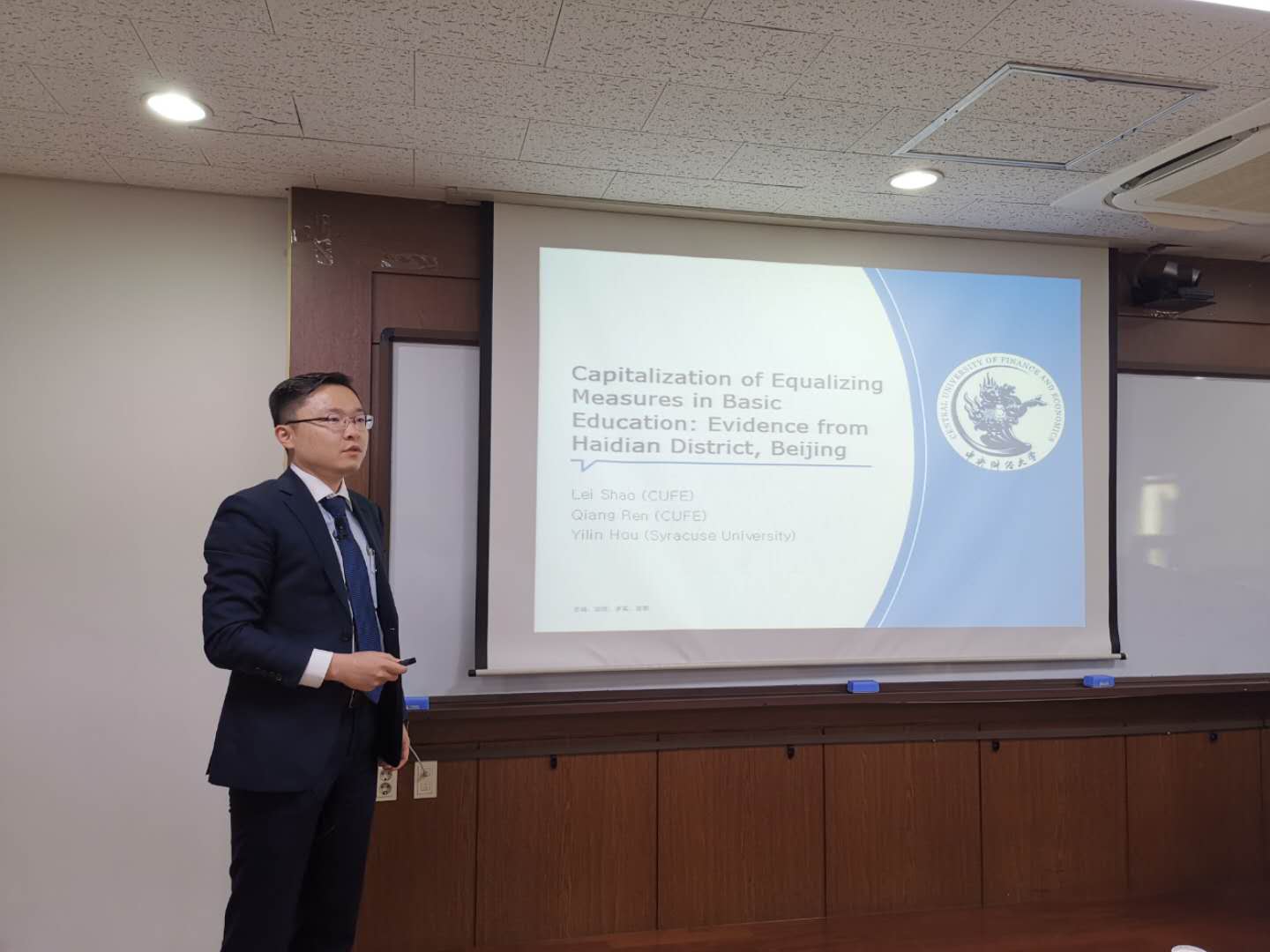 课题组受邀在韩国高丽大学公共管理公司作学术报告。出席的对方学者包括研究生院经理崔兴硕教授、公共管理公司副经理Lee Eungkyoon教授和Jun Koo、丁海溢等教授,以及来自高丽大学和韩国其他高校的部分学者和博士生。课题组成员侯一麟教授汇报了题为“Ability to Pay the Property Tax, Tax Incidence, and Redistributive Effects: An Empirical Analysis of Chinese Household Data”的学术论文,课题组成员邵磊老师汇报了题为“Capitalization of Equalizing Measures in Basic Education: Evidence from Haidian District, Beijing”的学术论文,对方代表丁海溢教授汇报了题为“Does Public Pension Crowd Out Private Transfers to the Elderly? Evidence from South Korea”的学术论文。汇报结束后,课题组成员与参加研讨会的学者分别对三篇论文的分析和结论进行了提问和回答,得到了参会专家对论文的具体建设性建议。
