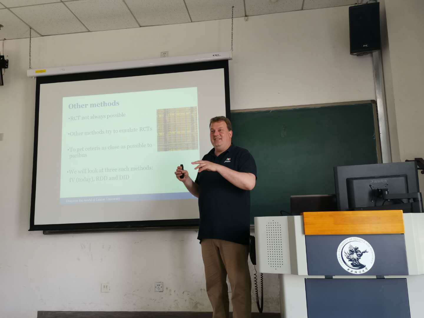 在本次全英文课程中,两位教授使用目前比较流行的应用计量经济学教材Mastering 'metrics: The path from cause to effect(Angrist, J. D., & Pischke, J. S., 2014)为主要参考资料,以理论和应用相结合的方式,为员工介绍了经济学当前的研究趋势和前沿研究方法。具体内容包括RCT(随机试验法)、IV(工具变量法)、RD(断点回归法)和DID(双重差分法)。两位教授首先从传统计量经济学方法在因果识别中的局限性出发,强调了遗漏变量、反向因果等问题可能造成回归结果偏误,对各前沿研究方法是如何克服这种局限性,作出了详细的理论推导。在此基础上,两位教授讲解Acemoglu(2001)、Gonzalez(2013)和Olken(2007)等经典文献是如何应用现代计量方法,对实证策略进行巧妙设计。这加深了同学们对课程内容的认识。两位教授演示了经典文献中具体的STATA命令操作,并对文献的实证结果作出细致分析。
