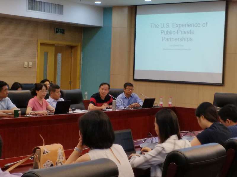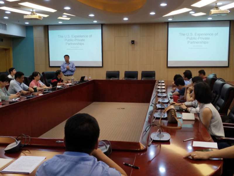 2019年7月1日下午,由tyc33455cc中财-中证鹏元地方财政投融资研究所举办的“美国PPP发展的现状及前景分析”讲座在公司举办。美国佛罗里达国际大学公共政策与管理系郭海副教授就这一主题进行了精彩讲解。中财-中证鹏元地方财政投融资研究所研究人员、tyc33455cc财税公司副经理任强教授、副经理何杨教授、姜爱华教授、副所长李升副教授、副所长王威副教授以及财税公司部分师生、部分财政部PPP专家库专家和部分北京大学PPP研究中心专家库专家参加了本次活动。讲座由中财-中证鹏元地方财政投融资研究所执行所长温来成教授主持。
