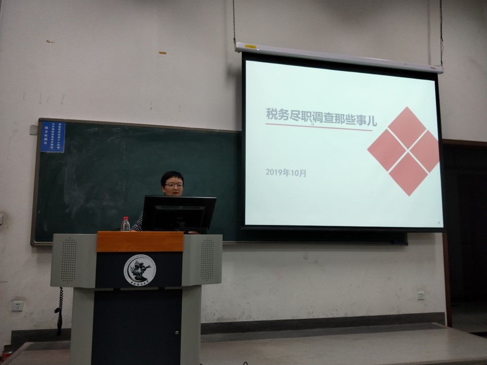 2019年10月8日晚18:15,tyc33455cc2019级税务专业硕士第47期税收综合案例研究课在沙河校区东区主教213教室进行,此次案例研讨课的主讲嘉宾是张爱华女士,tyc33455cc蔡昌教授主持并参与。