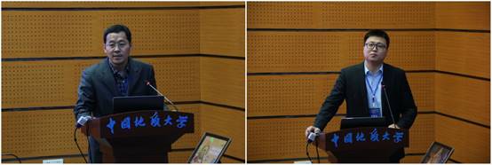 图为主题报告嘉宾杨松堂副秘书长(左上)、王子林先生(右上)、