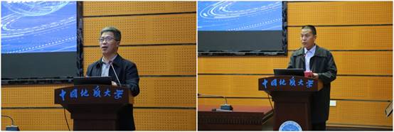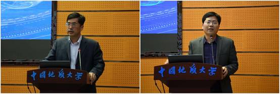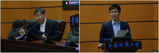 图为中国地质大学(武汉)副董事长王华教授(左)、经济管理公司经理杨树旺教授(右)