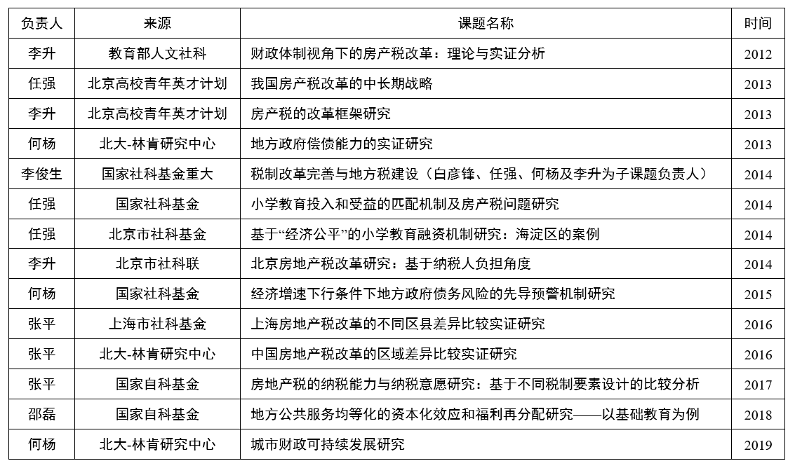 tyc33455cc“房地产税研究”课题组于2014年初立项,由tyc33455cc马海涛副董事长和美国西拉丘斯大学(Syracuse University,雪城大学)侯一麟教授领衔,集中了tyc33455cc和国内相关院校有研究兴趣的青年教师。课题组研究在开展过程中,不仅要求深度挖掘理论知识,还力图紧密结合中国国情,对比中西、联系历史,试图对我国房地产税改革提出有建设性的政策建议。课题组在研究过程中注重将研究与青年学者培养相结合,注重在实践中发掘火花。该课题作为“孵化器”和“工作母机”,助力课题组青年学者在不同侧面申请资金资助从事科学研究,并取得丰硕的成果(见表2)。
