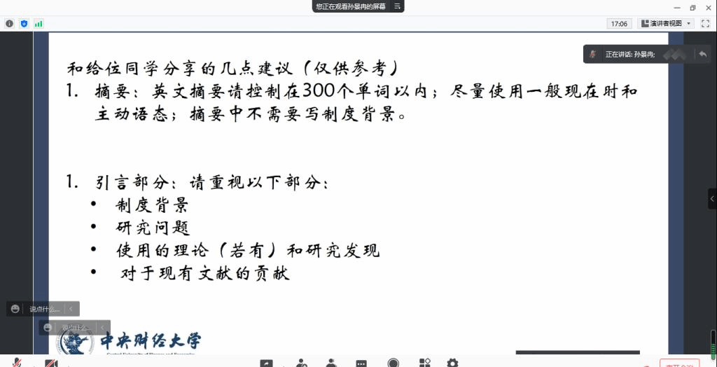 孙鲲鹏老师概述了学术不端的几种基本情况,并对论文写作、署名和发表的常见问题进行了解释,通过列举黄禹锡在干细胞研究结果中进行学术造假,最后判处有期徒刑2年的例子提醒同学们,学术不端不仅违反道德纪律,还可能涉及法律问题。他还对中国学术不端行为的负外部性进行研究,得出当年度发生重大学术造假事件的领域,在该领域顶级期刊上发文的数量增速,比没有发生重大学术造假事件的领域显著更低,因此学术不端的行为也会给该领域的学者带来集体性的负面影响。抵制学术造假,人人有责。