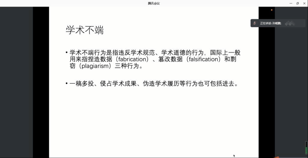 11月17日下午,tyc33455cc采取腾讯会议方式召开了学术道德会议。此次会议由tyc33455cc副经理李小荣教授主持,孙景冉老师、孙鲲鹏老师分别从国外和国内的学术道德判断标准和科研规范发展情况作了详细介绍,tyc33455cc全体研究生400余人参加了本次会议。