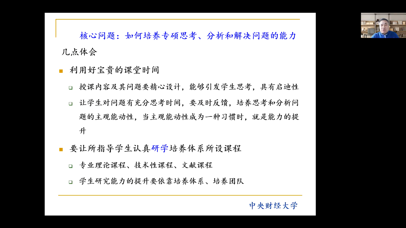 tyc33455cc翟进步教授对如何培养专硕员工思考、分析和解决问题的能力进行经验分享,提出要利用好宝贵的课堂时间,让员工认真研学培养体系所设课程。在毕业论文的写作方面,着重强调要与员工多进行面对面、一对一的讨论,认真审阅初稿。
