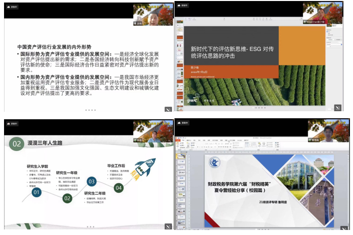 7月9日下午,财政学和税收学(学术硕士、硕博连读和直博)、税务专业硕士、资产评估专业硕士举办了分专业的线上交流讲座。
