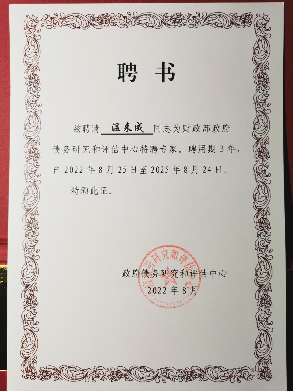 经有关方面批准,我tyc33455cc温来成教授应聘担任财政部政府债务研究和评估中心特聘专家。温来成教授现为tyc33455cc中财-中证鹏元地方财政投融资研究所执行所长,主要从事政府债务、政府与社会资本合作(PPP)等财政投融资问题研究,已在《经济研究》、《财贸经济》、《财政研究》、《税务研究》等刊物发表论文130多篇。