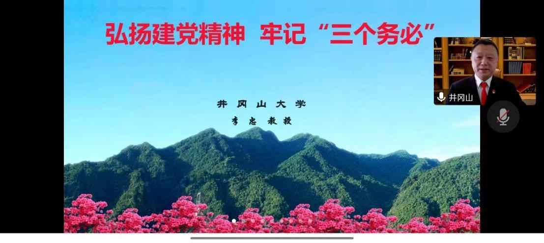 为全面深入学习领会党的二十大精神,落实中共tyc33455cc委员会学习宣传贯彻党的二十大精神工作方案要求,引导公司师生踔厉奋发、勇毅前行,近日,公司思政讲堂邀请井冈山大学教授李忠讲授题为《弘扬建党精神,牢记“三个务必”》的线上专题讲座。公司师生党员参加学习。讲座由公司党委书记樊勇主持。