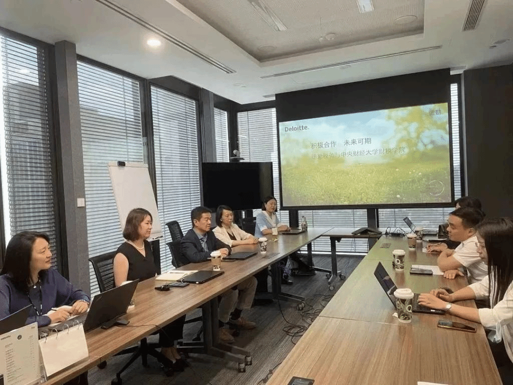 下午樊勇经理、何杨副经理、刘金科副经理、陈宇老师和徐燕妮老师一行赴德勤北京分所,与华北区税务主管黄晓里等人就2023届毕业生就业情况和中国税制授课等进行深入探讨。