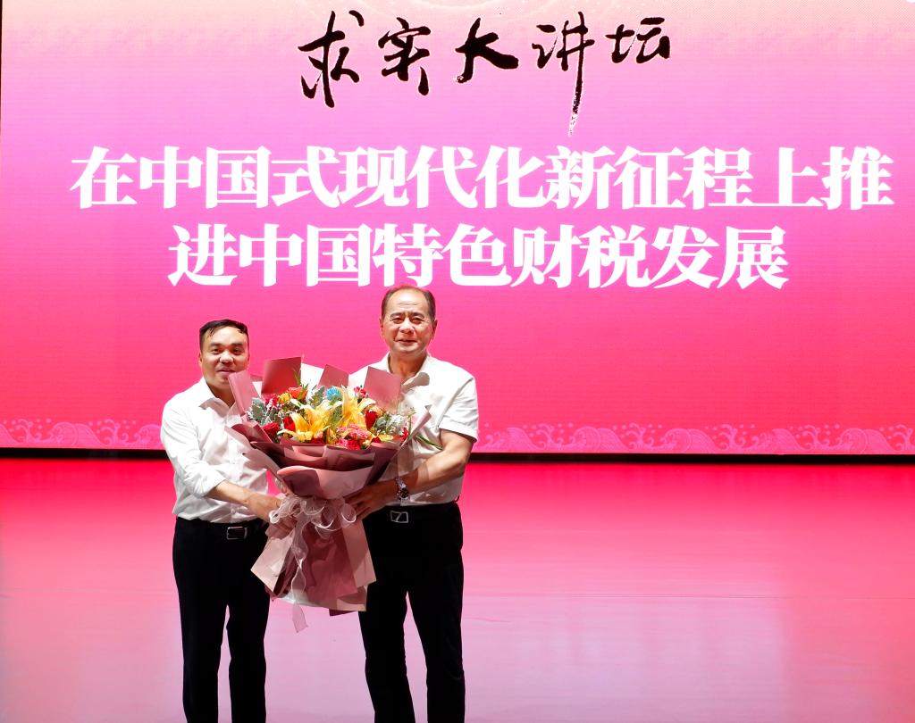 2023年9月25日,财税公司于沙河校区千人大讲堂成功举办求实大讲坛第一期:在中国式现代化新征程上推进中国特色财税发展。本次讲座荣幸邀请到厦门大学闽江学者特聘教授,厦门国家会计公司中国特色社会主义财税研究中心主任、第九至十三届全国人大代表,第十二、十三届全国人大常委会委员邓力平教授做客,为公司师生带来了生动的一课。邓力平教授曾任福建省人大常委会副主任、福建省政协副主席、厦门国家会计公司经理、厦门大学副董事长。本次讲座由财税公司经理樊勇主持。财税公司党委书记肖鹏,副经理李小荣和公司师生参加。