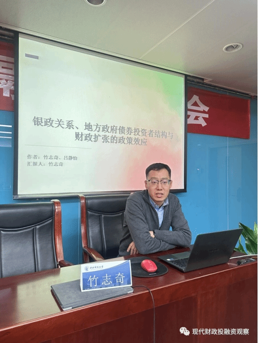 第二分会场发言由王威副教授进行会议总结,概括了各位专家基于不同研究视角的发言对于推动相关研究全面深入的积极作用,并表达了对专家们参与支持财政投融资年会的感谢。第三阶段青年学者分会场发言由青岛理工大学商公司刁伟涛副教授主持。天津财经大学财政系主任竹志奇讲师认为,我国商业银行持有地方政府债券,形成银政关系,可能导致商业银行在市场中的特殊地位,挤占企业融资需求,影响政府与市场的良性互动。建议加强市场化改革,防范地方政府与商业银行风险传导,并促进地方政府债券市场化,提高投资者吸引力。