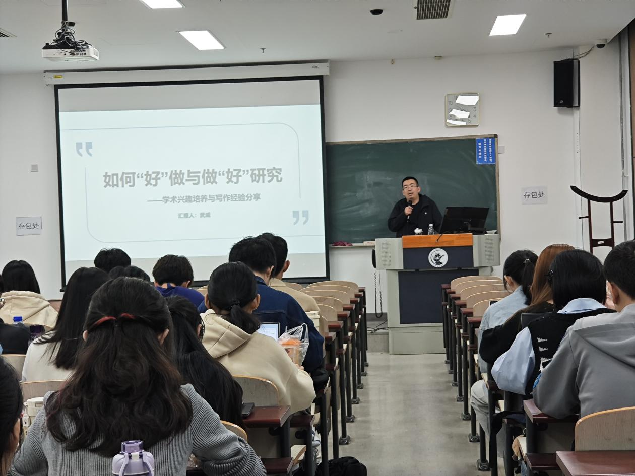 讲座伊始,武威老师首先对“如何‘好’做研究”进行了深入剖析。他强调了知识与真理的关系,并指出真理是思维对于存在把握所形成的“符合”客观存在的正确知识。武威老师还就学术兴趣与职业生涯选择进行了讨论,他鼓励同学们们实现从“知识学习”向“知识生产”的转变,并找到真正的研究兴趣,实现职业生涯与研究兴趣的有机结合。