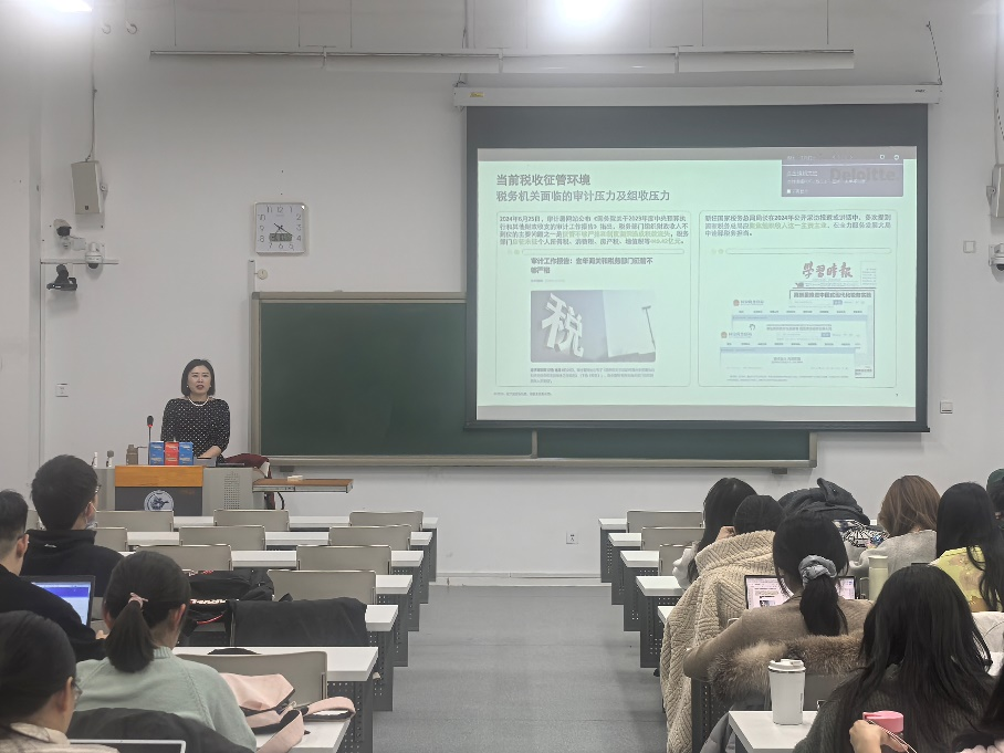 2025年3月10日晚,公司邀请到德勤中国税务与商务咨询部合伙人张如老师,为2024级税务专业硕士同学们带来《税收征管趋势及跨境税收征管案例研究》的专题讲座。张如老师详细地为同学们梳理了我国最新的税收征管趋势,并通过政策分析、案例解剖与互动答疑等方式,深化了同学们对税收实务的理解。