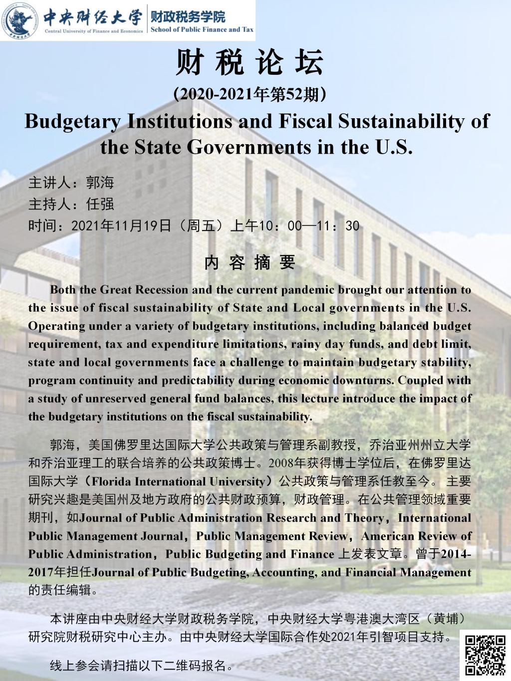 【财税论坛】Budgetary Institutions and Fiscal Sustainability of the State Governments in the U.S.