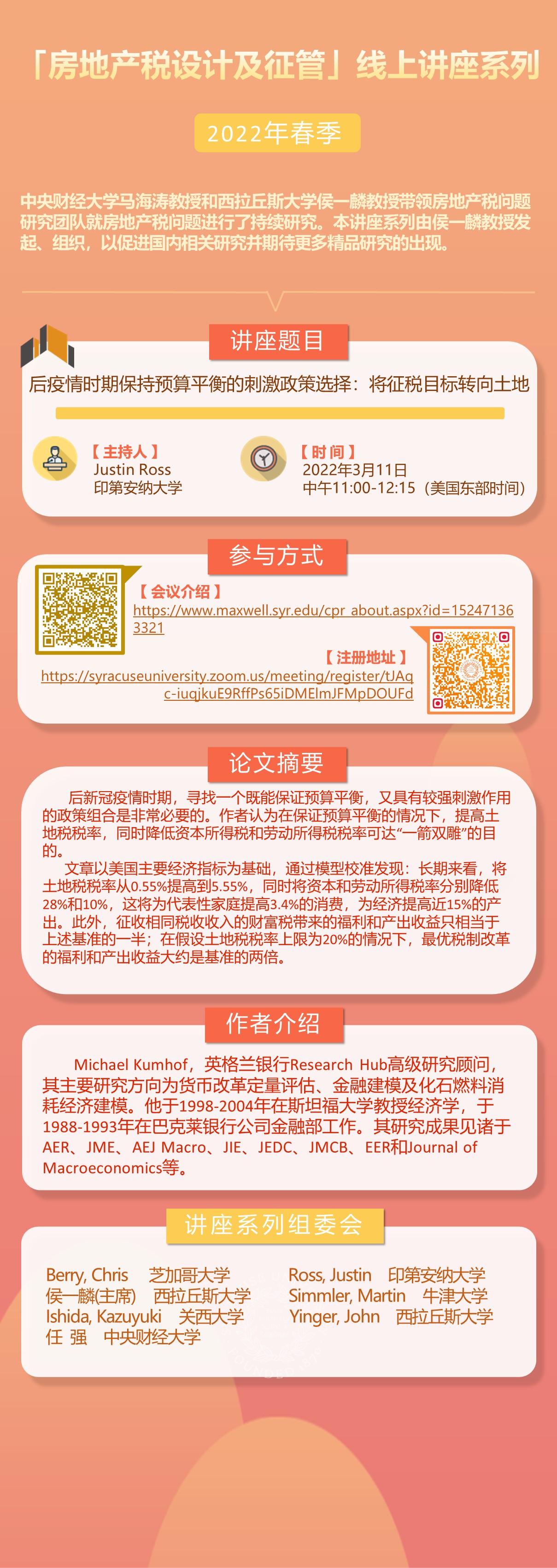 “房地产税设计及征管”线上讲座系列2022年春季——后疫情时期保持预算平衡的刺激政策选择:将征税目标转向土地