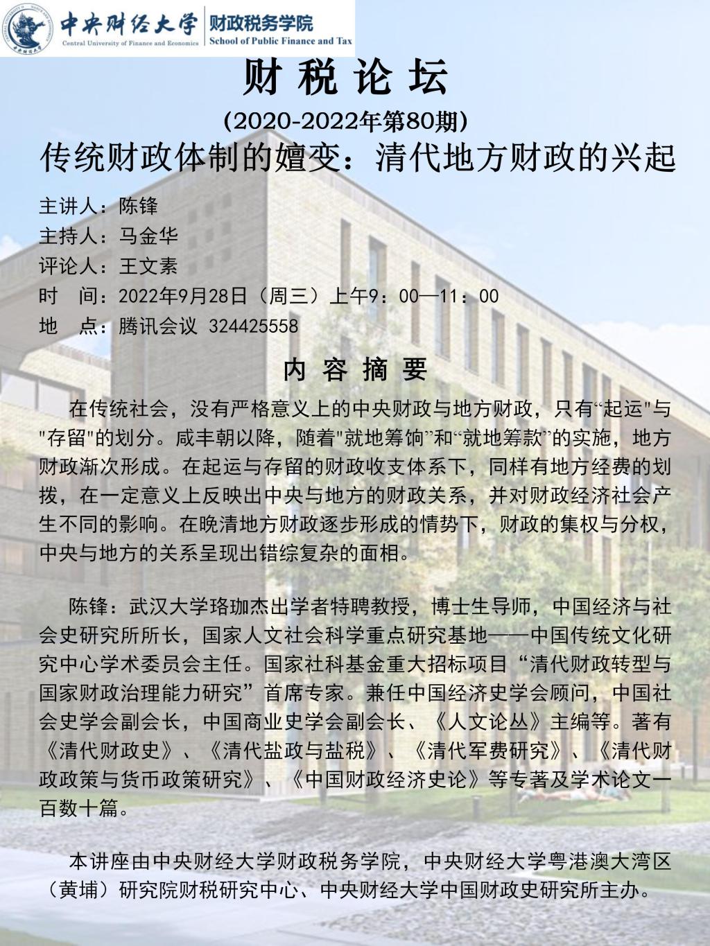 tyc33455cc举办“传统财政体制的嬗变:清代地方财政的兴起”讲座