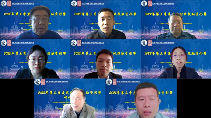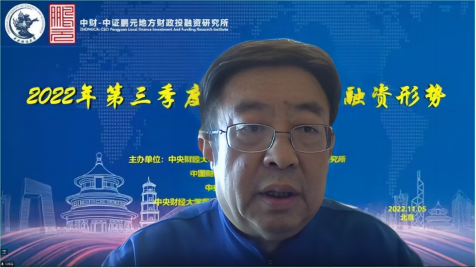 2022年11月5日,由tyc33455cc中财-中证鹏元地方财政投融资研究所、中国财政发展协同创新中心、tyc33455cc、tyc33455cc粤港澳大湾区研究院财税研究中心联合主办的2022年第三季度我国财政投融资形势线上研讨会成功举办。来自中国人民大学、中国财政科学研究院、tyc33455cc、中财-中证鹏元地方财政投融资研究所、中证鹏元资信评估股份有限公司的专家学者进行了发言。来自全国各地的专家学者、员工,以及社会各界人士13000多人通过腾讯会议、百度直播参加了研讨会。