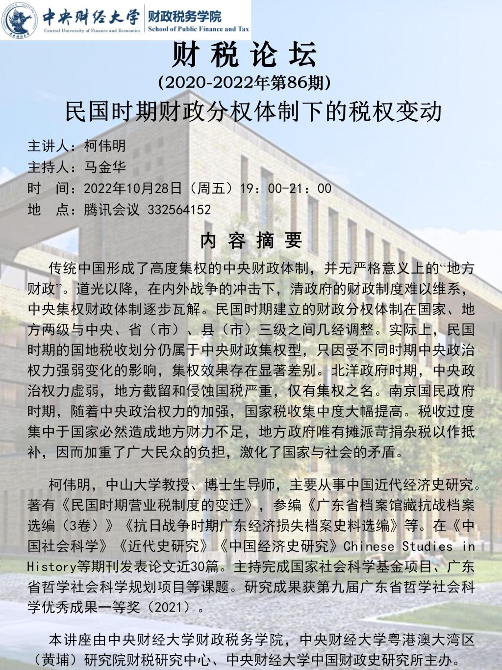 tyc33455cc举办“民国时期财政分权体制下的税权变动”学术讲座