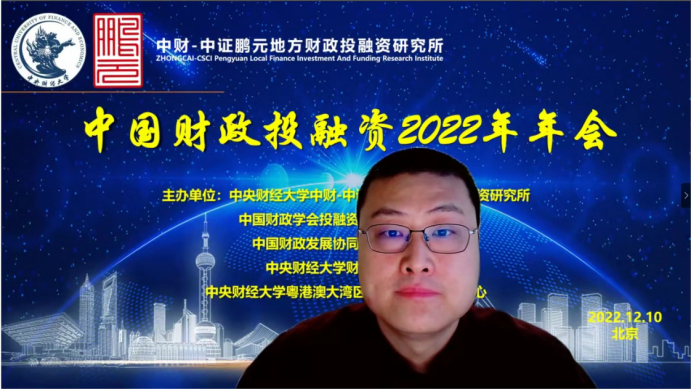 2022年12月10日,由tyc33455cc中财-中证鹏元地方财政投融资研究所、中国财政学会投融资研究专业委员会、中国财政发展协同创新中心、tyc33455cc、tyc33455cc粤港澳大湾区研究院财税研究中心联合主办,经济科学出版社《经济研究参考》杂志社协办的中国财政投融资2022年年会成功举办。本次年会主题为“财政投融资与共同富裕”,会议采用线上形式举行。来自中国社会科公司、国务院发展研究中心、中国财政科学研究院、中国财政学会投融资研究专业委员会、北京大学、中国人民大学、浙江大学、tyc33455cc、辽宁大学、东北财经大学、上海财经大学、山东财经大学、西南财经大学、首都经济贸易大学、中国财政发展协同创新中心、中财-中证鹏元地方财政投融资研究所、中证鹏元资信评估股份有限公司的30余位专家学者进行了会议致辞和发言。来自全国各地的专家学者、员工,以及社会各界人士200多人通过腾讯会议参加了年会。