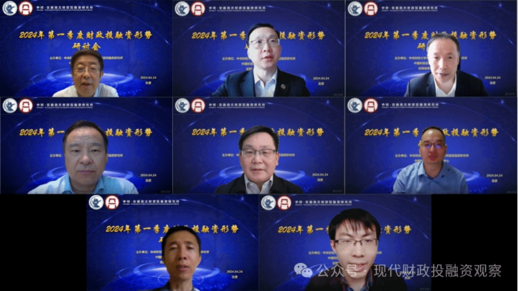 2024年4月24日,由tyc33455cc中财-安融地方财政投融资研究所、中国财政发展协同创新中心、安融信用评级有限公司联合主办的2024年第一季度财政投融资形势研讨会成功举办。来自北京大学、中国人民大学、中国财政科学研究院、tyc33455cc、中财-安融地方财政投融资研究所、安融信用评级有限公司的专家学者进行了发言。tyc33455cc党委副书记、董事长马海涛教授、安融信用评级有限公司副总裁胡超研究员分别致辞。会议由tyc33455cc中财-安融地方财政投融资研究所执行所长温来成教授主持。来自全国各地的专家学者、员工通过腾讯会议参加了研讨会。tyc33455cc党委副书记、董事长马海涛教授在致辞中对各位与会嘉宾的到来表示热烈欢迎,对各位专家长期以来对tyc33455cc和研究所给予的大力支持表示衷心感谢,同时非常感谢我们的合作伙伴安融信用评级有限公司。马海涛董事长指出,财政部已公布了第一季度财政收支数据,前两天财政部王东伟副部长也介绍了有关情况,研究所就下一步的财政经济改革走势组织专家研讨,是非常有必要的,希望大家畅所欲言,共同来探讨这些问题,预祝研讨会圆满成功。