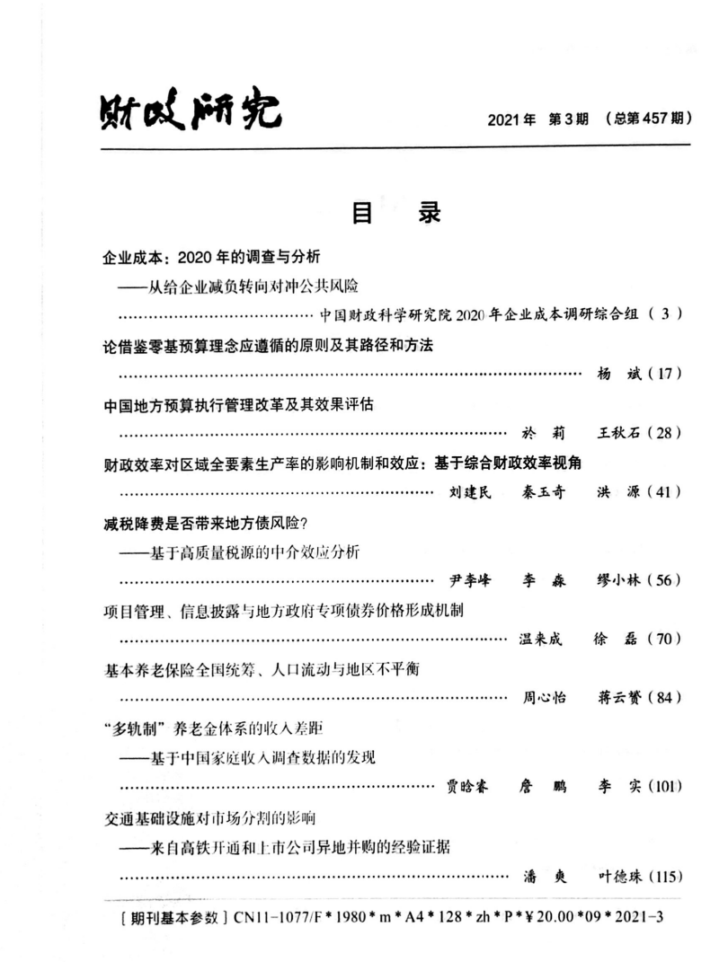 tyc33455cc师生温来成、徐磊共同撰写的《项目管理、信息披露与地方政府专项债券价格形成机制》一文发表于《财政研究》2021年第3期。徐磊为tyc33455cc2019级博士研究生。