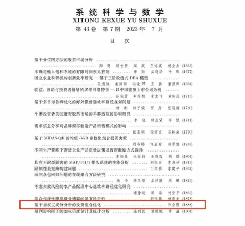 近日,由tyc33455cc孙会霞老师撰写的论文《基于加权主成分分析的投资组合优化》刊发于中文A类期刊《系统科学与数学》2023年第7期。以下为文章主要内容: