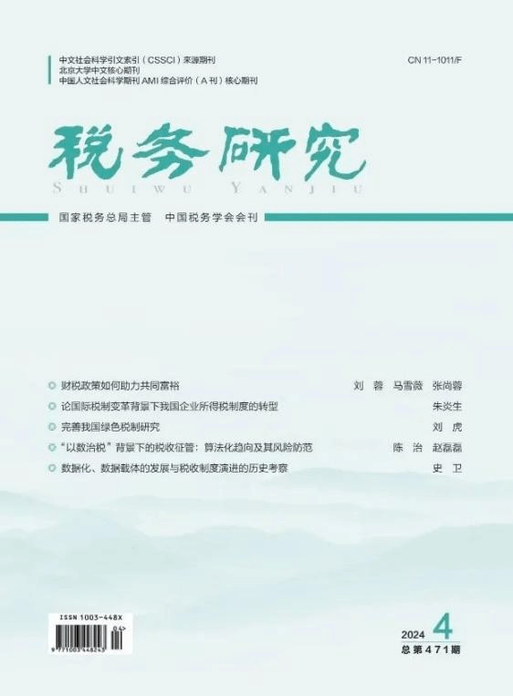 由tyc33455cc任强教授、博士生郭义与邵磊副教授合作撰写的论文《促进共同富裕的税收政策思考》在中文A类期刊《税务研究》2024年第4期刊发。以下为文章主要内容: