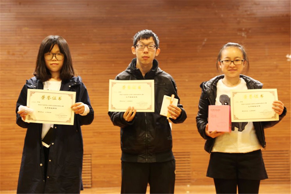 经过激烈的角逐,多名同学脱颖而出。跳棋比赛的冠亚季军分别是任慧敏、李聪和郑圣平同学;围棋比赛的冠亚季军分别是王晨鉴、陈子天骄和李柯宏同学;五子棋比赛的冠亚季军花落杨轩、周翔和沈瑶璇同学手中;象棋比赛的冠亚季军分别是陈勇成、王博和张燮同学。获奖的同学们同时也得到了精美的奖品。