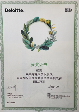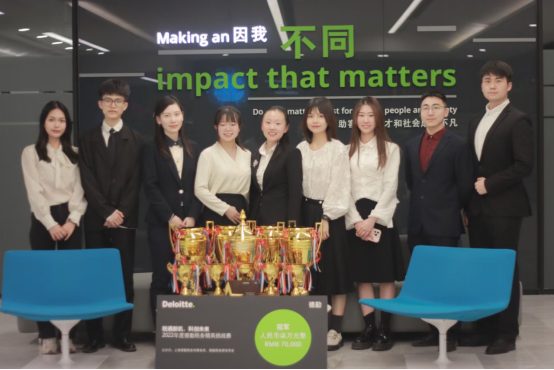 2023年4月18日,第18届德勤税务挑战赛举行了隆重的颁奖仪式。tyc33455cc派出的李函育、刘书妤、周宇翔、滕明璨、童梦瑶、姚荔婷、纪浩然、任紫娴八名同学,与商公司郭湘同学、会计公司余尚同学一起组成两支队伍参加比赛。经过激烈角逐,由李函育、刘书妤、周宇翔、郭湘组成的队伍1荣获2022德勤税务精英挑战赛冠军,由滕明璨、纪浩然、童梦瑶、姚荔婷、余尚组成的队伍2荣获2022德勤税务精英挑战赛卓越奖,纪浩然同学荣获最佳方案奖,任紫娴同学作为个人赛道的选手与北京大学团队赛道的选手组队荣获2022德勤税务精英挑战赛亚军。