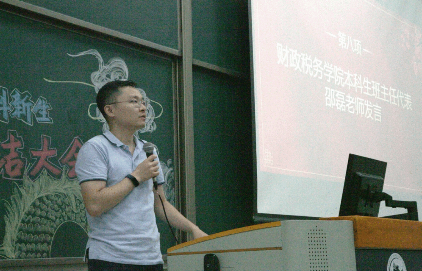 大会第三项,班主任邵磊老师发言。邵磊老师对战胜了疲惫与困难,坚持刻苦训练的财税23级新生们提出了表扬。同时,邵磊老师也为新生们送出了祝福与期待:军训时的收获成长与未来的老员工活息息相关,希望同学们能够将不怕困难、敢打硬仗的精神延续到后面的学习生活中,度过多姿多彩的大学四年。