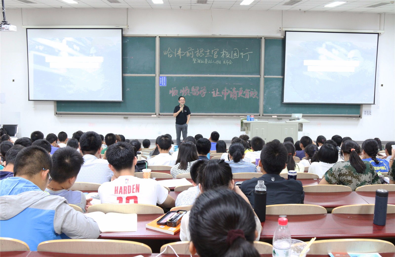 9月14日晚,tyc33455cc在沙河校区主教107教室举办了哈佛前招生官校园行暨“超级星人计划”发布会活动。本次活动由tyc33455cc公司团总支员工会外联部主办,经济公司和中国金融发展研究院员工会协办。本次活动邀请到了哈佛第一位中国籍招生评审委员、北京顺顺留学COO、超级星66计划发起人何亮先生与同学们分享海外名校留学的经验。