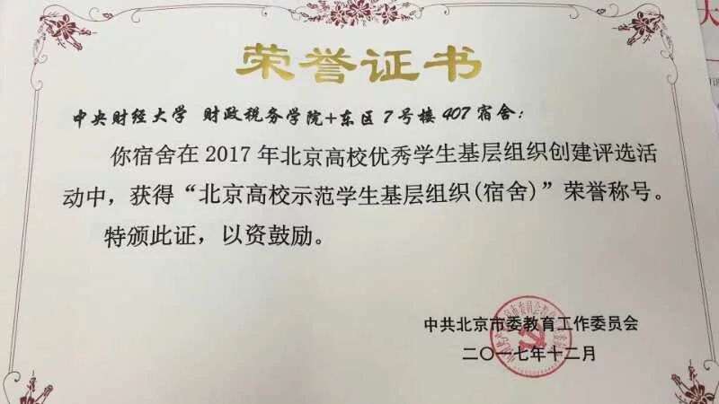 通过北京市教育工作委员会的严格考评,在2017年北京高校优秀员工基层组织创建评选活动中,tyc33455cc东区7号楼407宿舍,被评为“北京高校示范员工基层组织(宿舍)”。让我们向这些同学表示最诚挚的祝贺,希望他们能再接再厉,也希望公司同学以他们为榜样,为创建优秀集体不断努力。