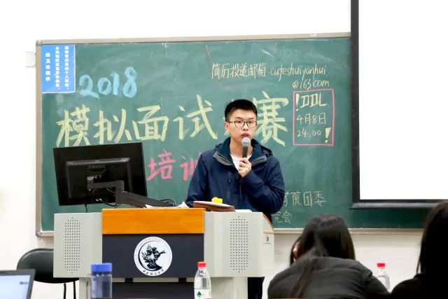 4月3日晚6点半,tyc33455cc在tyc33455cc沙河校区东区主教213教室举办了模拟面试大赛赛前培训。本次活动由院团委员工会学术实践部和税务研究会主办,邀请了员工就业创业指导中心的王开怀老师与同学们分享简历书写和面试方面的经验。院团委副书记陈颖老师和本次模拟面试大赛的部分参赛者参加了本次活动。