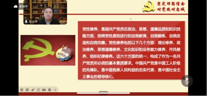 最后,陈士平老师介绍了加强党性修养的方法途径,他告诫同学们要靠提高理论素养,在工作实践中锤炼党性,坚持自我净化、自我完善、自我革新和自我提高,同时要严守纪律、约束自我。希望同学们经过这次学习之后能够深入反思,在个人成长方面取得进步,在未来为党的事业、为国家和社会发展做出自己的贡献。
