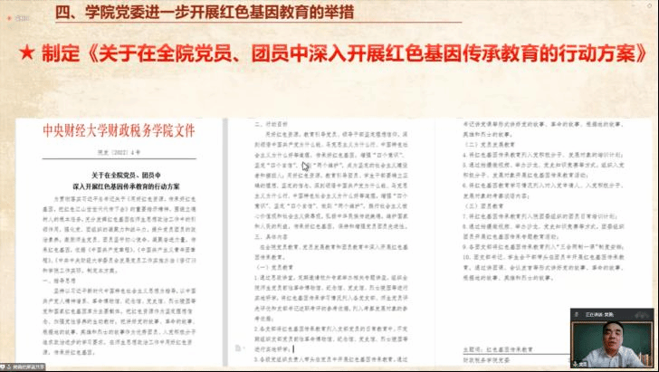 樊勇书记以《深入开展革命传统教育,将红色基因传承好》为题,作交流分享。在讲话伊始,樊勇书记首先介绍了财税公司和白家疃村的党组织情况。tyc33455cc目前有23个党组织和420多名党员,白家疃村有100多名党员。他指出,在师生规模较大、党组织数量和党员数量较多的党组织体系中,财政税务公司党委依然把加强党的建设作为重要抓手。其中一个很重要的抓手就是红色基因传承教育,这也是财税公司党员学习教育和发展党员、团员等的主要工作。