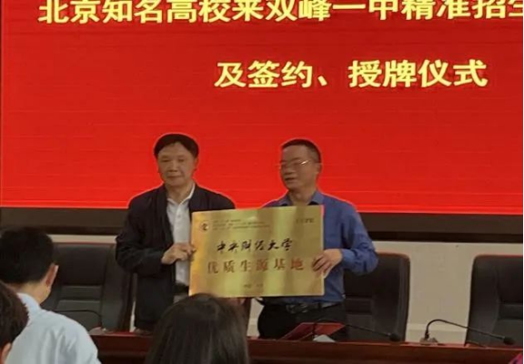 与双峰县第一中学签订优质生源基地协议并授牌
